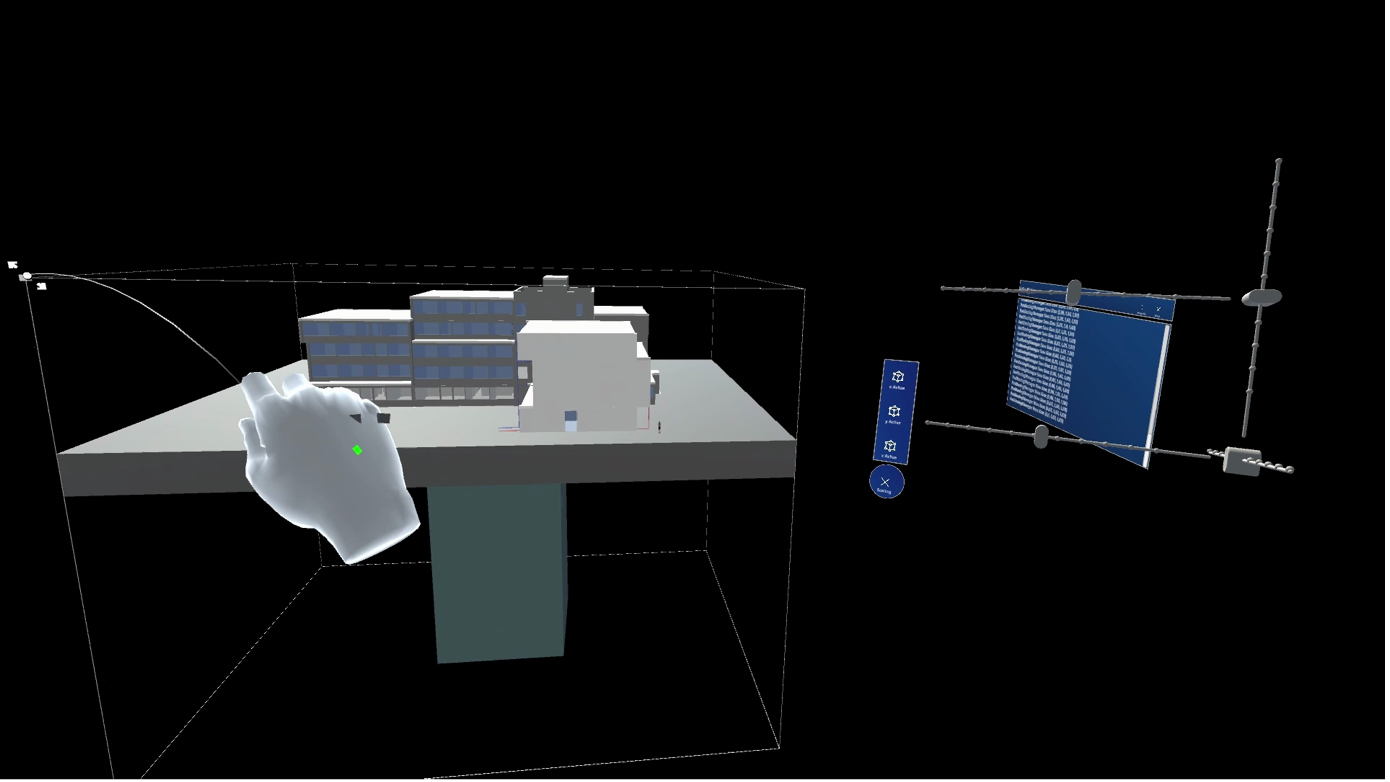 Im Rahmen des Projektes entstand eine 3D-Visualisierung des digitalen Zwillings der Wärmewand. Das Modell lässt sich per Sprachbefehl in Größe, Position und Ausrichtung anpassen. Für die Wärmewand selbst wurden Befehle wie „Wand auf“ und „Wand zu“ realisiert.