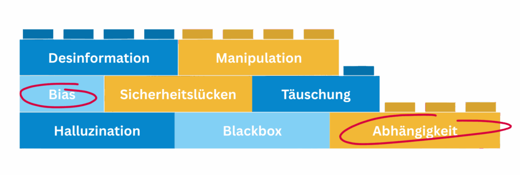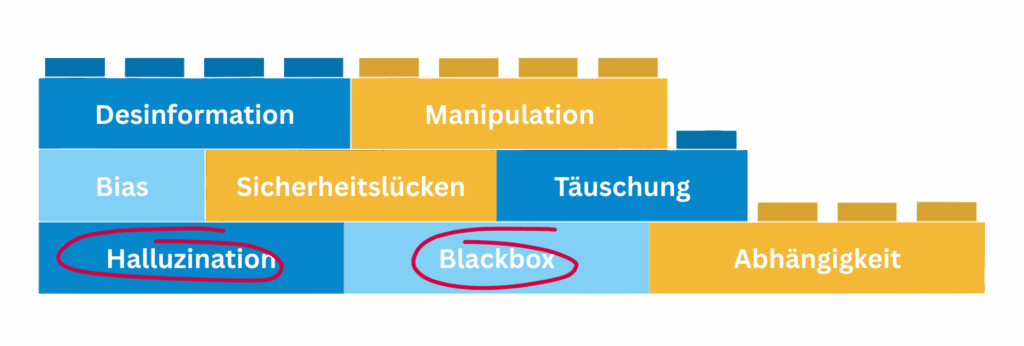 KI-Systeme können Fehler machen und falsche Informationen liefern. Besonders bei Übersetzungs- oder Textsystemen kann es passieren, dass die KI etwas falsch übersetzt, missverständlich darstellt oder erfindet.