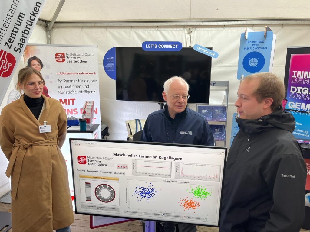 Unser Gemeinschaftsstand lockte die Besucherinnen und Besucher mit interaktiven Demonstratoren zum Ausprobieren – von KI-gestützter Schadensfrüherkennung über sprachgesteuerte Robotik bis hin zu IT-Sicherheitslösungen für den Mittelstand war alles dabei. Ob neugierige Bürgerinnen und Bürger, Vertreterinnen und Vertreter aus Wirtschaft und Politik oder junge Talente: das Interesse war riesengroß, und der Andrang an allen drei Tagen konstant hoch.